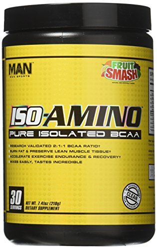 -. Binding : Health and Beauty -. Brand : Man Sports -. EAN : 0898684554724 -. Feature : Iso-Amino packs 5 grams of pure isolated BCAAs per serving in a scientifically proven 2:1:1 ratio / Iso-Amino can be taken throughout the day and is especially useful intra-workout to speed recovery / MAN sports -. IsAdultProduct : 0 -. Label : SETAF -. Manufacturer : SETAF -. Model : PROMMAN17 -. MPN : PROMMAN17 -. NumberOfItems : 1 -. PackageQuantity : 1 -. PartNumber : PROMMAN17 -. ProductGroup : Health and Beauty -. ProductTypeName : HEALTH_PERSONAL_CARE -. PublicationDate : 2016-09-12 -. Publisher : SETAF -. ReleaseDate : 2016-09-09 -. Size : One Size -. Studio : SETAF -. Title : MAN Sports 30/Servings Fruit Smash Iso Amino, 7.41 Ounce -. UPC : 898684554724