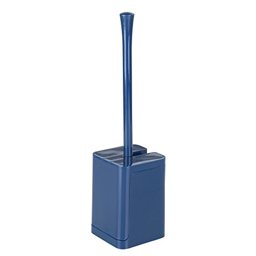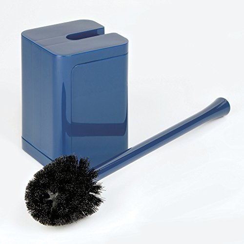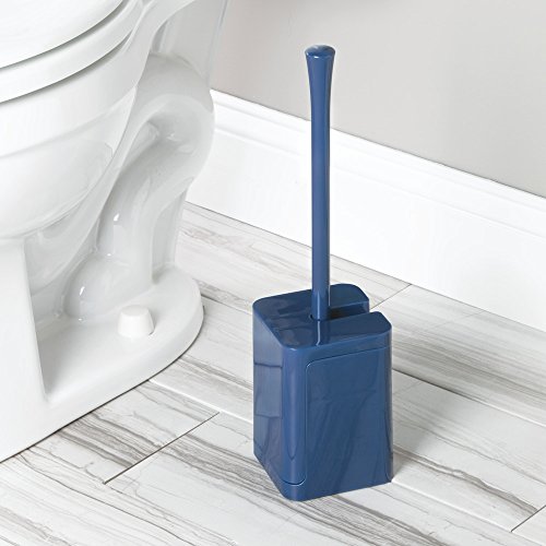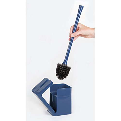 InterDesign Hideaway Compact Toilet Bowl Brush and Holder - Bathroom Cleaning Storage, Navy