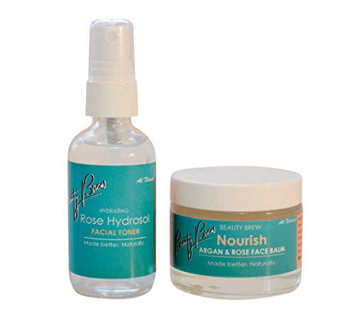Beauty Brew Rose Water Hydrosol Face Mist Toner and Nourish Argan Oil and Rose Face Balm Set