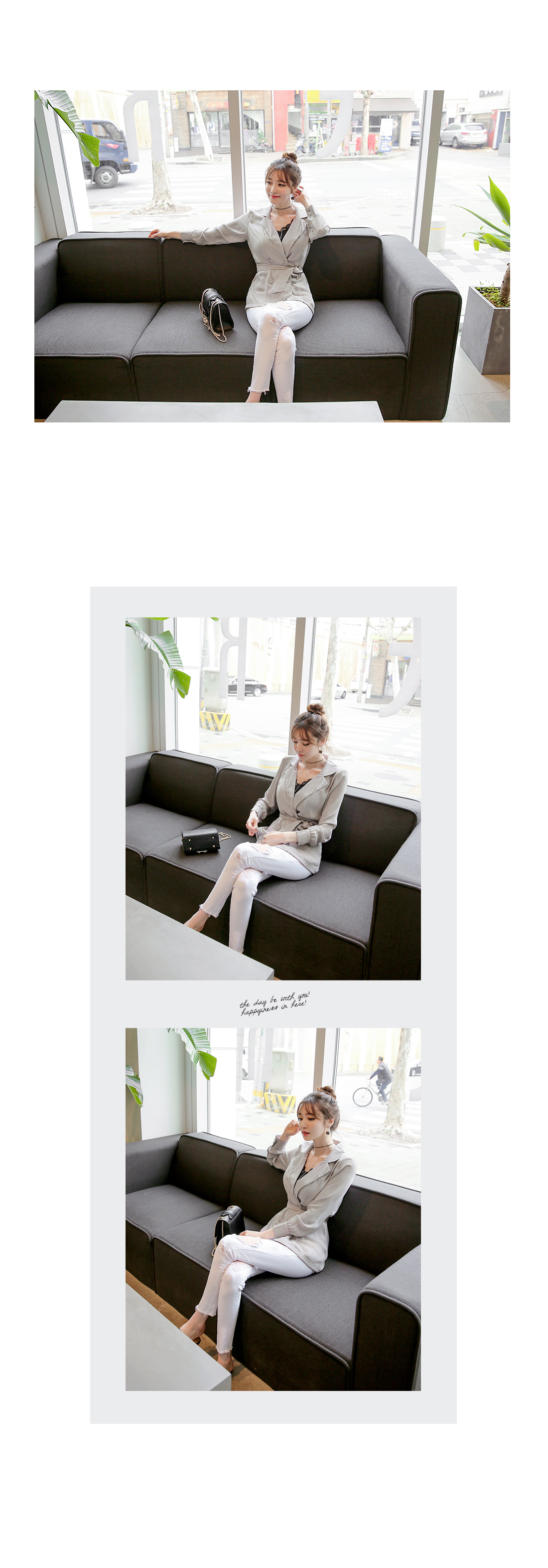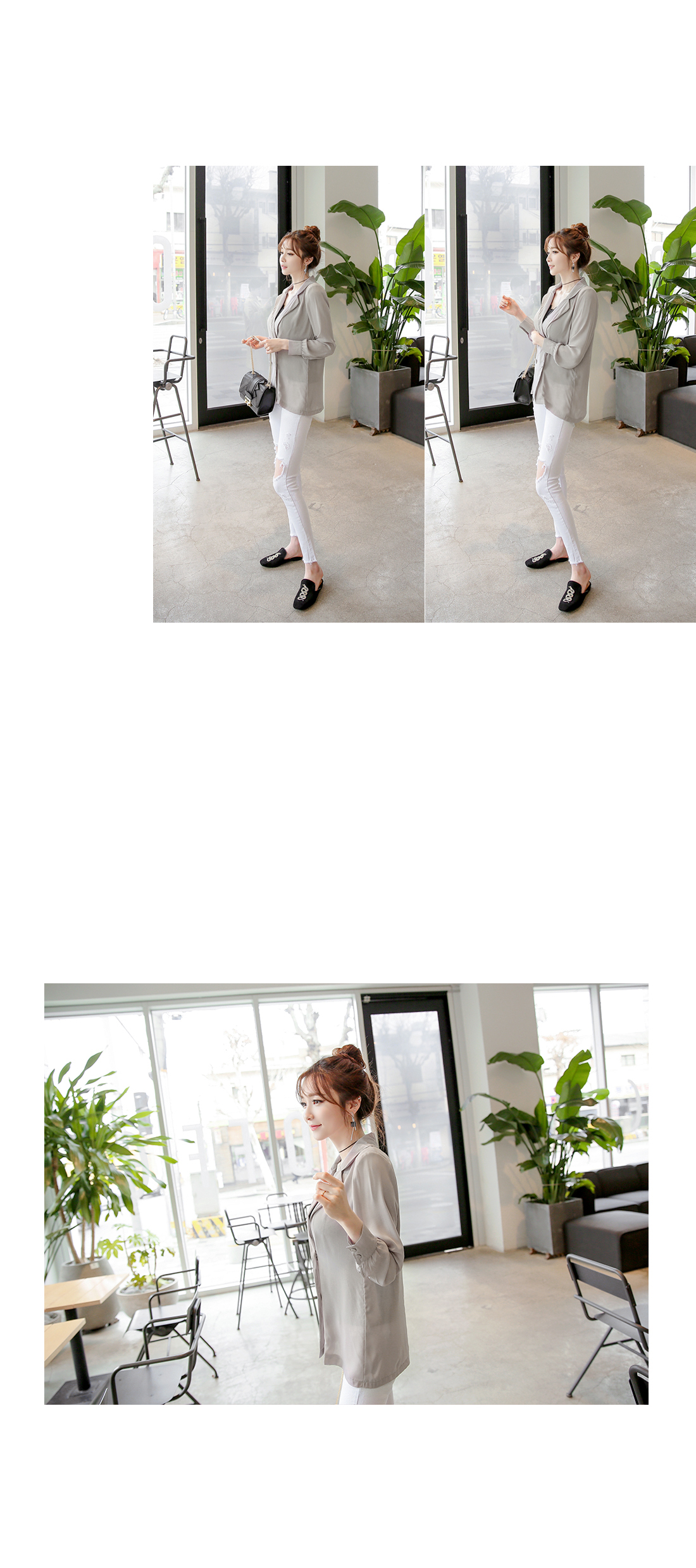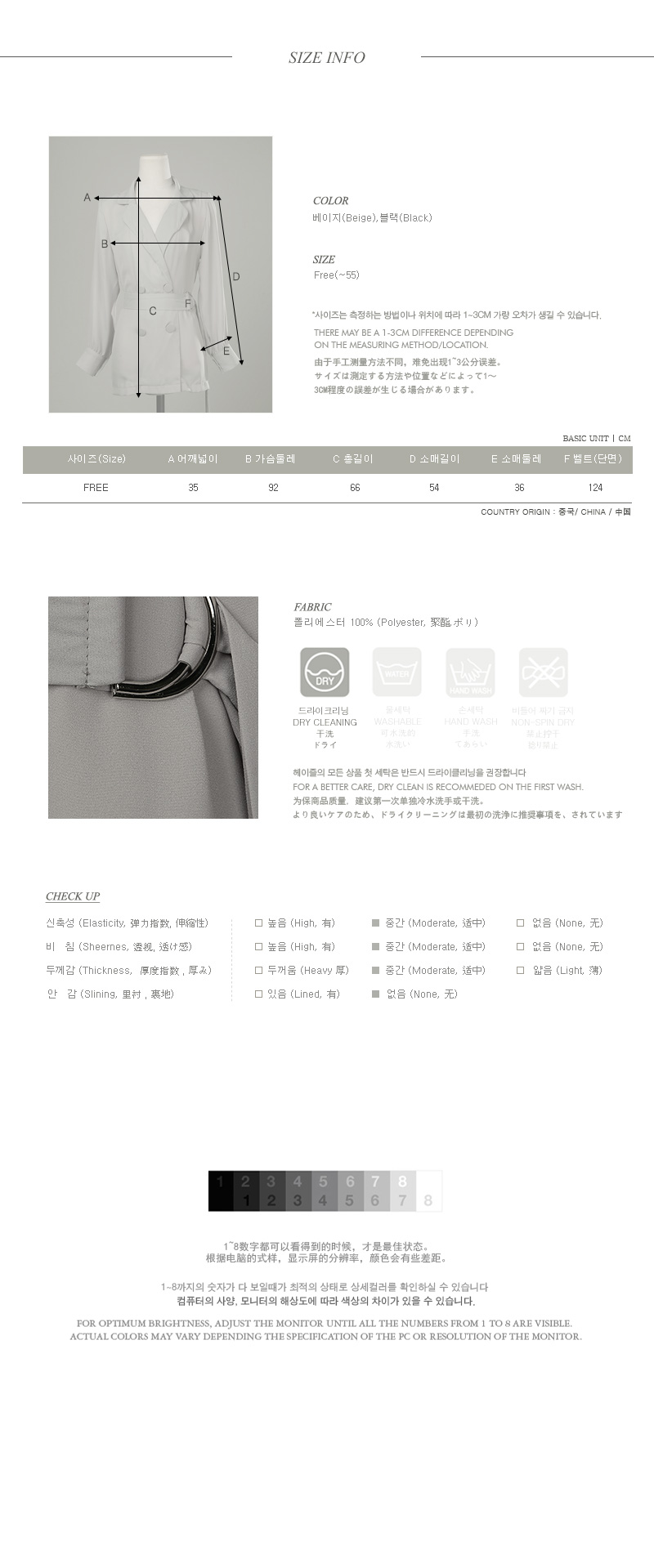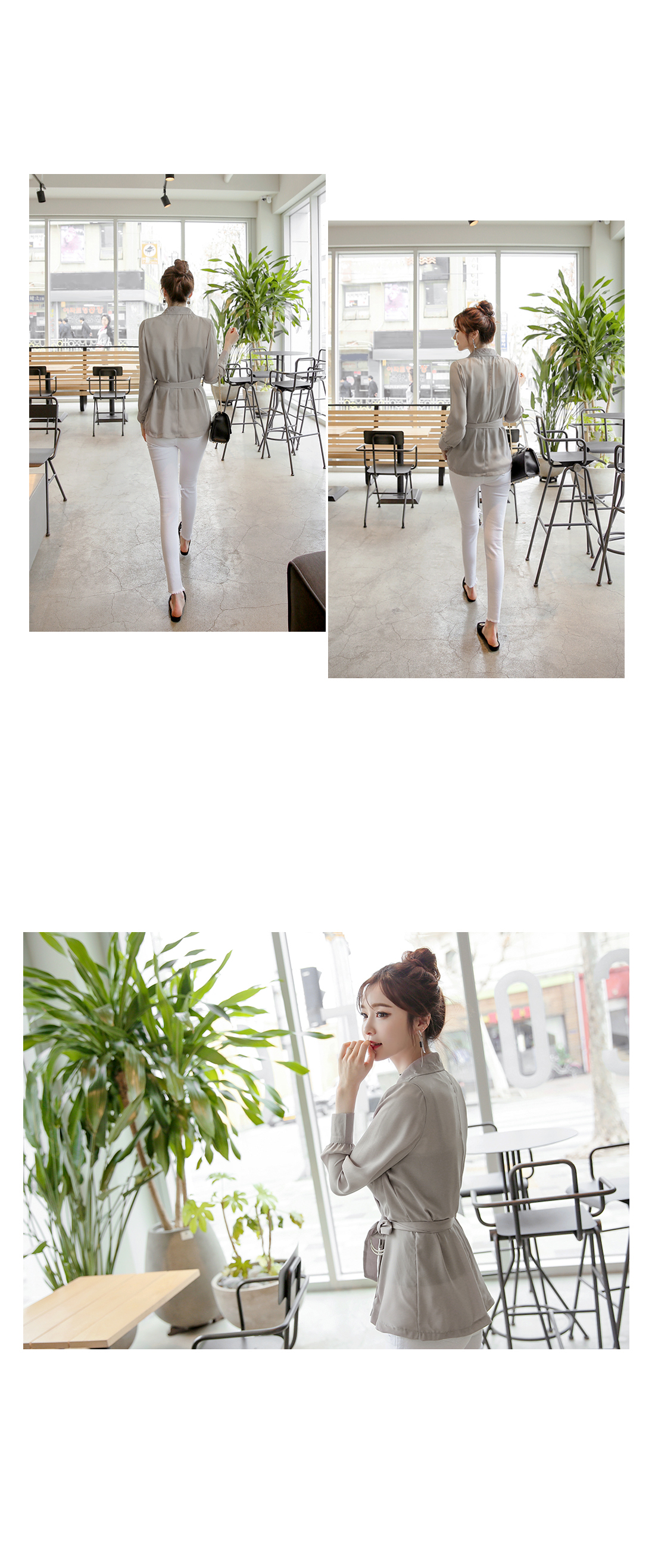 자켓인듯 블라우스인듯 다양한 연출이 가능한 블라우스예요~^^ 벨트를 하지않으면 자켓 스타일의 모던룩을 연출할 수 있어요~^^ 벨트와 함께 매치하여주면 멋스러운 오피스룩으로도 완성할 수 있는 활용도 높은 블라우스랍니다~ 적당한 두께감으로 계절에 구애없이 즐길 수 있는 블라우스 아이템을 적극 추천해드려요~