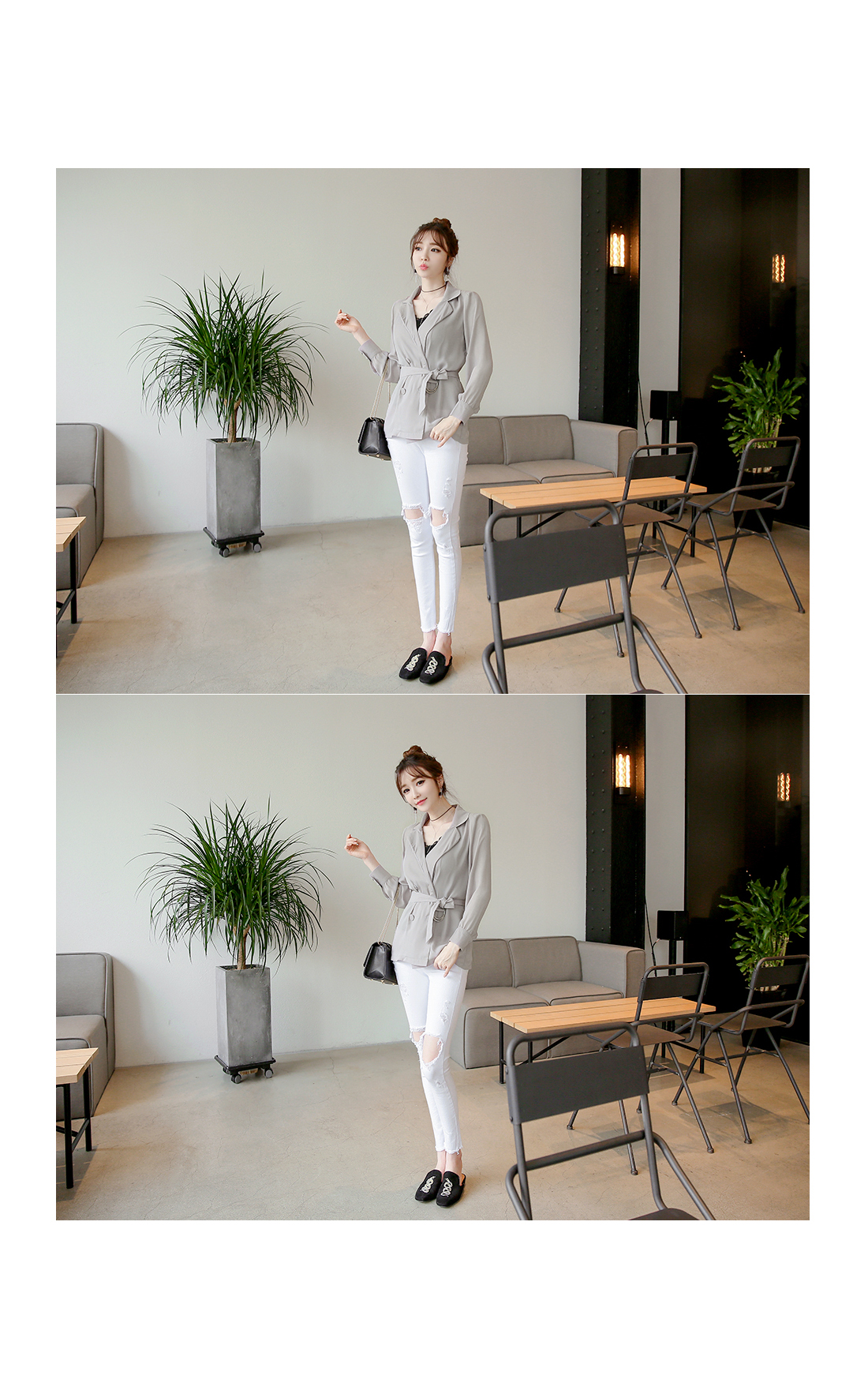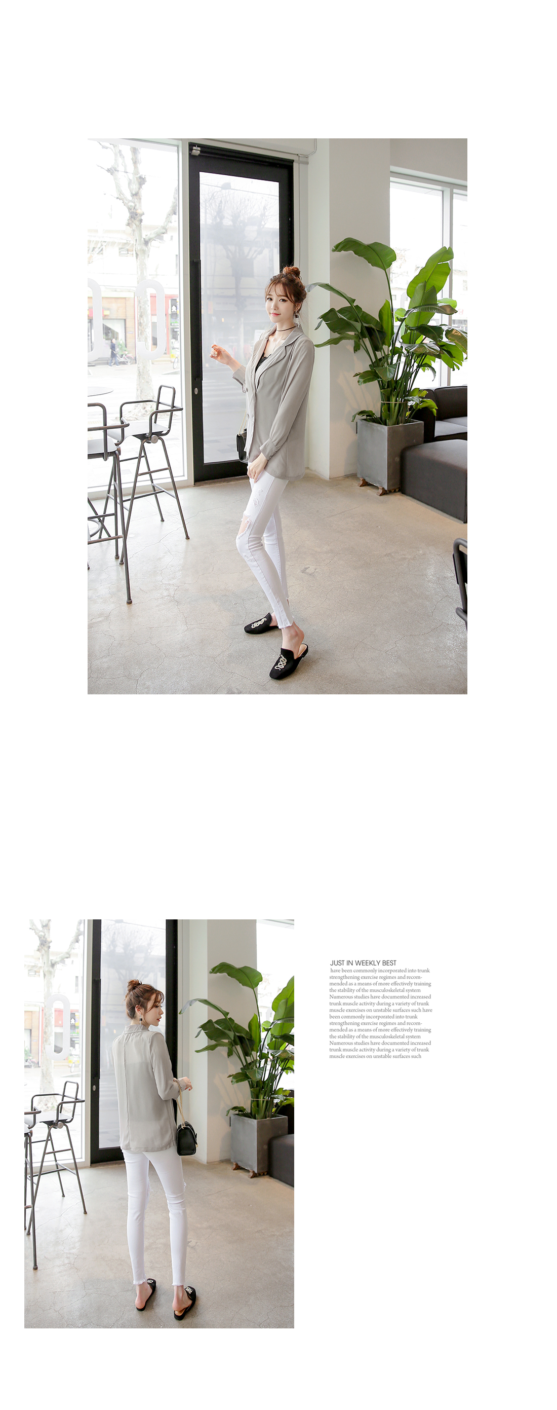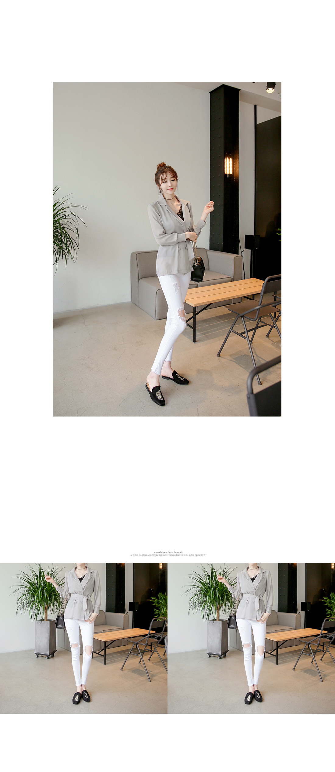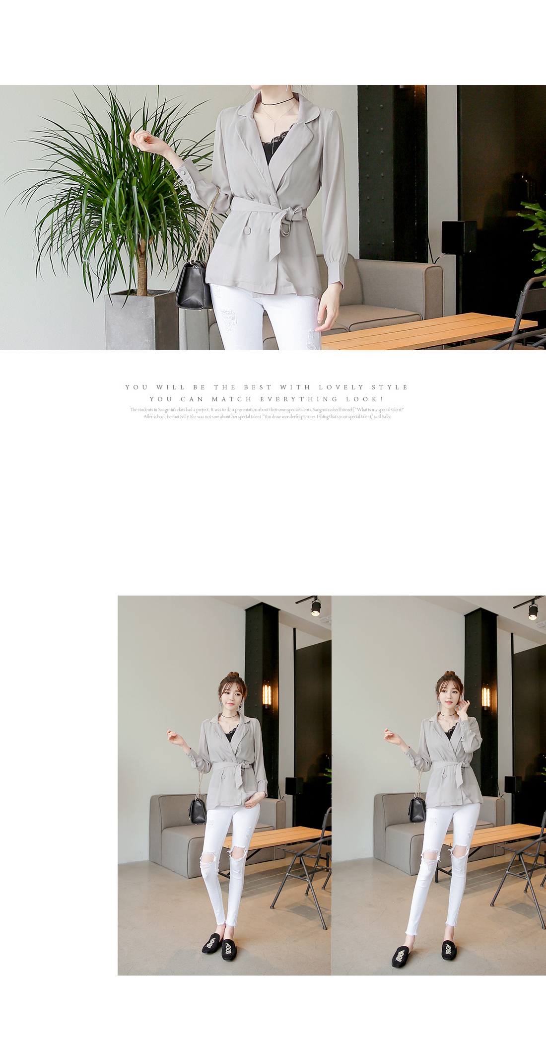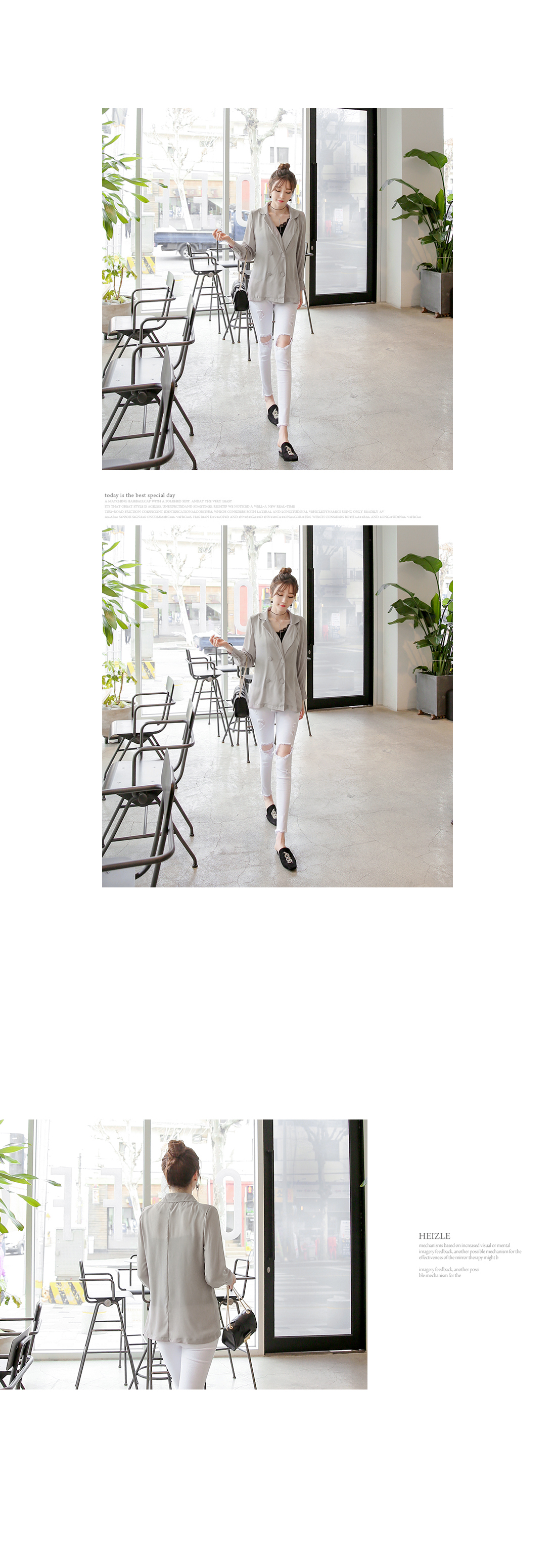 자켓인듯 블라우스인듯 다양한 연출이 가능한 블라우스예요~^^ 벨트를 하지않으면 자켓 스타일의 모던룩을 연출할 수 있어요~^^ 벨트와 함께 매치하여주면 멋스러운 오피스룩으로도 완성할 수 있는 활용도 높은 블라우스랍니다~ 적당한 두께감으로 계절에 구애없이 즐길 수 있는 블라우스 아이템을 적극 추천해드려요~