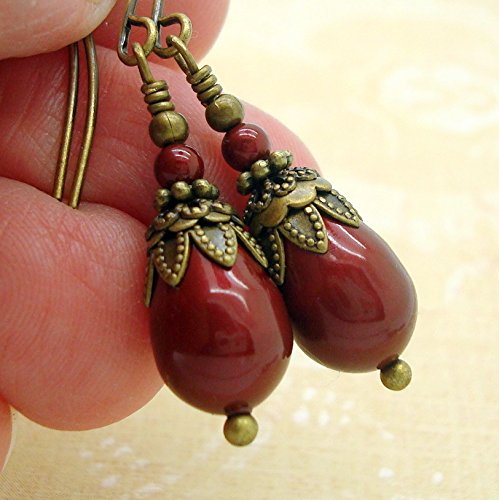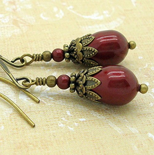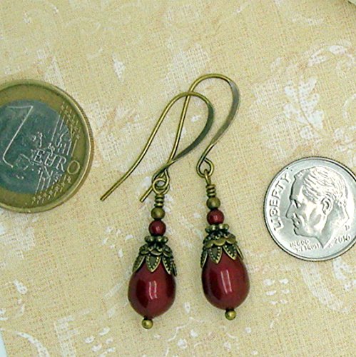 -. Title : Victorian Jewelry Style Teardrop Pearl Earrings, Swarovski Pearl Tear Drop, Wine Red