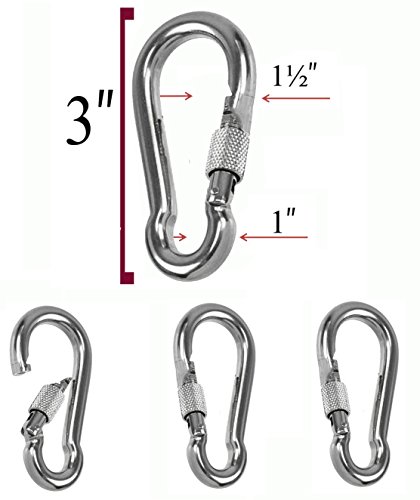 Non-Rust Stainless Steel 304 Spring Snap Hook Carabiner Screw Lock- 3 inch - Key Ring Hook with Spring Loaded Gate/Camping, Traveling, Hiking…etc…Set of 4 (not to be used for climbing)