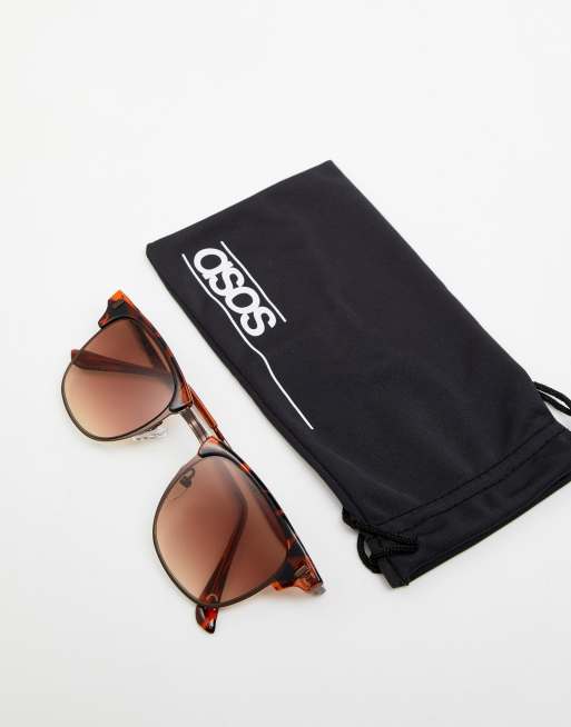 ASOS DESIGN retro sunglasses in tort with brown lens