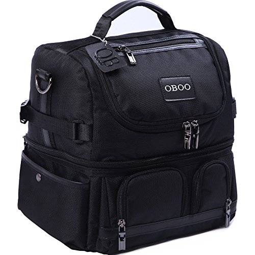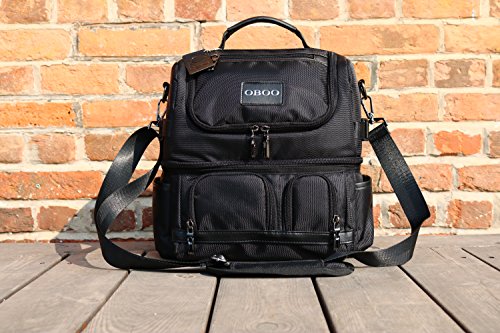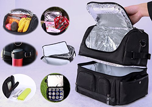 OBOO Adult Lunch Box Insulated Lunch Bag,Double Reusable Waterproof Large Cooler Tote with Shoulder Strap for Men&Women(black, 12can)