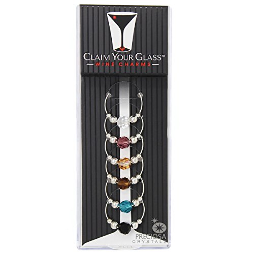-. Title : BOHEMIAN Preciosa Crystal Wine Charms (Set of 6) by Claim Your Glass - Premium Drink markers for stemmed Wine, Champagne, Martini Glasses - Includes Storage Case + BONUS Velveteen Bag