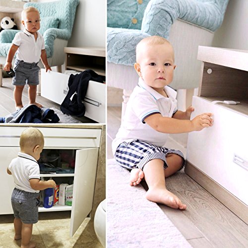 - ✅ BABY PROOF YOUR HOME – Be assured of your baby safety while the little explorer wanders around in the home unmonitored – our baby safety cabinet locks offer an easy way to baby-proof your home.