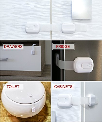 - ✅ VERSATILE – Use these child locks as cupboard locks, or for locking shelves & drawers containing medicines, chemicals, toiletries, floor cleaners, or any other areas you can identify.