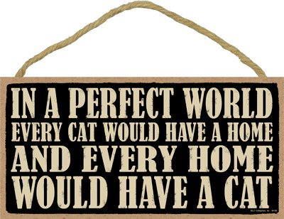 (SJT94168) In a perfect world every cat would have a home and every home would have a cat 5" x 10" wood sign plaque