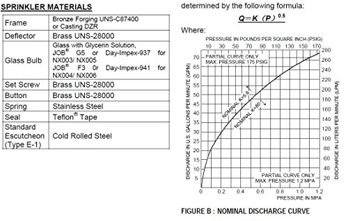 Temperature Rating: 155°F (68°C);Discharge Coefficient: K=5.6(U.S) /80(Metric);Nominal Orifice Size:1/2"(15mm)