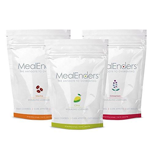 -. Binding : Health and Beauty -. Brand : MealEnder -. Feature : Beat overeating, master portion control, and curb snacking -- 100% satisfaction guarantee / Uses behavioral and sensory science (no drugs or herbs) to signal the end of eating and train mind and body to eat healthy, right-sized portions / Easy to integrate into routine and works in conjunction with other diet plans; just savor (don't chew) one whenever you feel the urge to overindulge / Patent pending, stimulant-free, and only 15 calories per great-tasting lozenge / Enjoy eating without fear of overeating; 3-pack keeps you stocked at home, work and on-the-go -. Label : Willpower Labs -. Manufacturer : Willpower Labs -. ProductGroup : Health and Beauty -. ProductTypeName : HEALTH_PERSONAL_CARE -. Publisher : Willpower Labs -. Studio : Willpower Labs -. Title : MealEnders Signaling Lozenges, Cravings Reducing Portion Control Weight Loss Diet Aid, 25-count Pouch (Pack of 3)