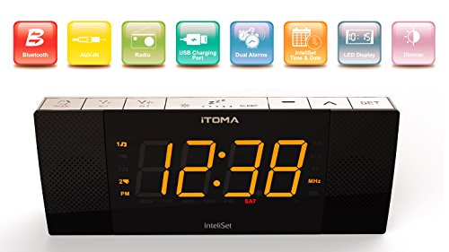 ITOMA ALARM CLOCK RADIO WITH BLUETOOTH SPEAKERS,DIGITAL FM RADIO,DUAL ALARM WITH SNOOZE,CELL PHONE USB CHARGING, AUTO AND MANUAL DIMMER, AUXILIARY INPUT, BACKUP BATTERY (CKS503BT)