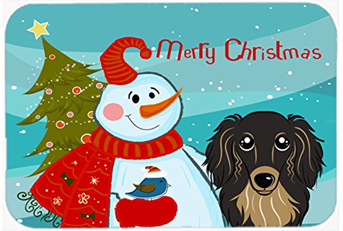 Caroline's Treasures BB1833LCB Snowman with Longhair Black and Tan Dachshund Glass Cutting Board, Large, Multicolor