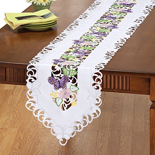 -. Feature : Linens feature an intricately embroidered design, colorful flowers, greenery and butterflies / Perfect alone or with a coordinating tablecloth underneath (sold separately) / Made from machine washable polyester / Available as either a Runner (68"L x 13"W) or a Square (34"Sq.) / Shop with confidence! For over 50 years, Collections Etc has been bringing unique, whimsical, inspirational, and home solution products to customers. All Collections Etc products come with a 60 day, easy return policy and 100% satisfaction guarantee