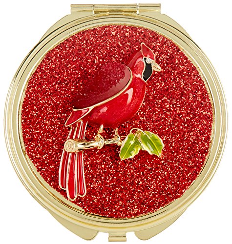 Product Description Napier metal round compact mirror case with a red cardinal and glitter accents. Double mirrors, one standard and one magnified. Compact case has hinged back. 2.5" in diameter. 0
