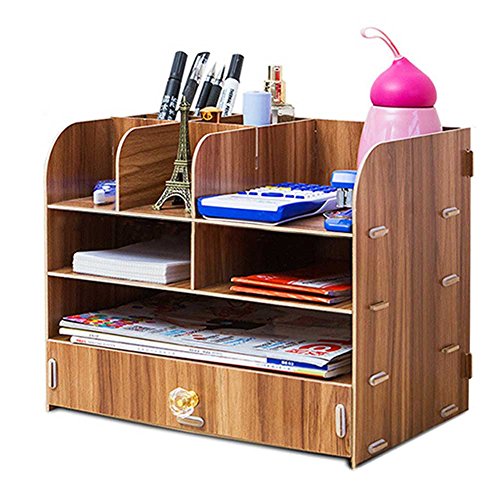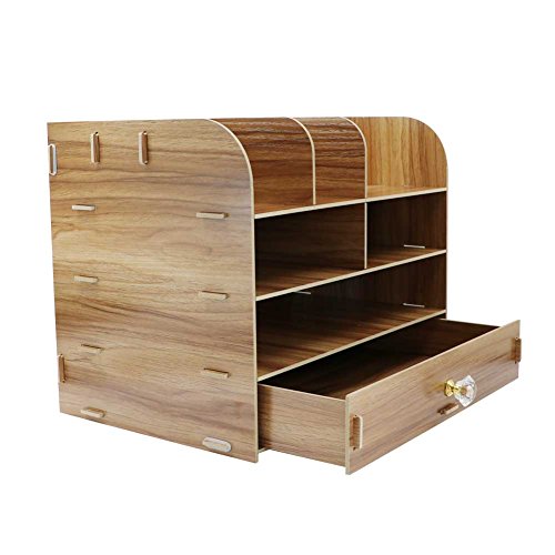 Dr Nezix Wood File Storage Box Organizers Holder, Files Supplies Office Supply Organizer, DIY Wooden Detachable Desktop Multilayer File Frame, A4/A5 Paper Magazine Document Desk Shelf
