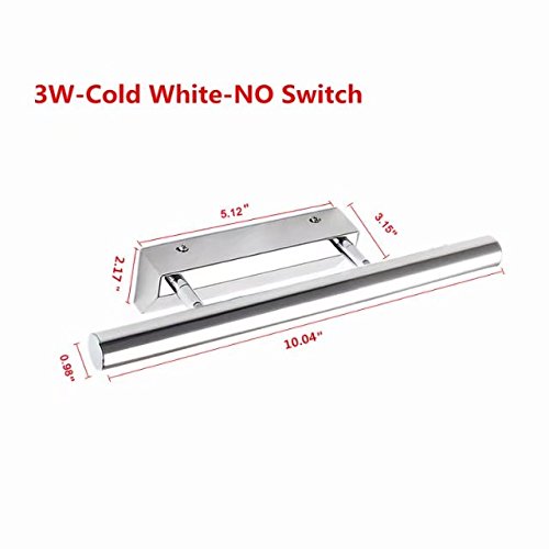Mirror Front Light Jentinsun 3W LED Modern Waterproof Anti-fog Bathroom Vanity Wall Mounted Sconces Lamp Stainless Steel Fixture Lighting for Makeup Bedroom Cabinet (Cold White)(No Switch)