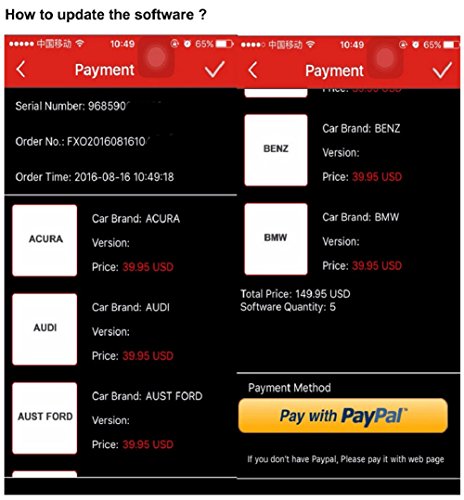 -. Feature : NOTICE: EOBD is not free. Easydiag 2.0 includes HARDWARE, OBDII and EOBD2 software. If you need new car software,You may order the software at www.dbscar.com.It will cost about: 39.95 USD for 1 car brand software; 99.95 USD for 3 car brands software; 149.95 USD for 5 car brands software. / Supports OBD-II protocol, 10 test modes.Free OBD software download.Built-in Bluetooth module.Compatible with Andriod and iOS devices.Support all cars with 16-pin OBD port.Reads all DTCs and supports live data stream display / Complete system and subsystem coverage (engine, ABS, SRS, transmission and more) with live date and color graphing / Includes Bluetooth OBDII connector-optional extension cable available for easier plugging and unplugging of OBDII connector / Reads and clears codes on all vehicle systems