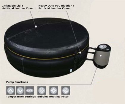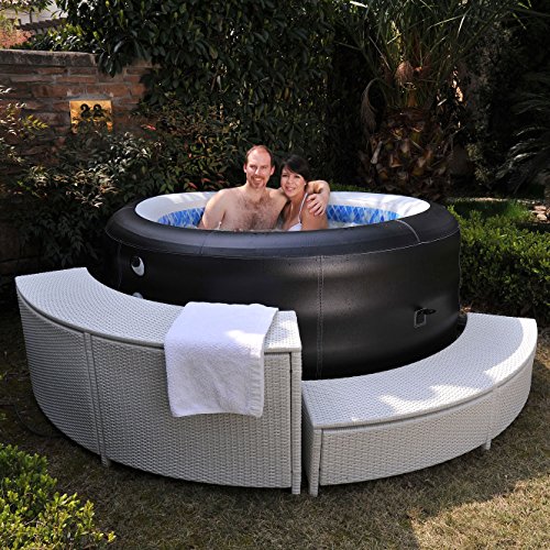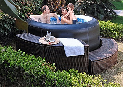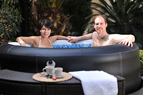 JILONG AVENLI 4-PERSON SPA PROLONG DELUXE INFLATABLE HOT TUB WITH ARTIFICIAL LEATHER COVER, BLACK