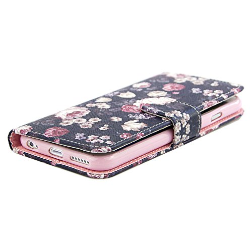 iPhone 6 Case, Dimaka Floral Pattern Flower Wallet Case, with Flip Stand Card Slots Cash Compartment, Premium PU Leather with Strap Hole for iPhone 6 / iPhone 6S 4.7" - Peony Flower