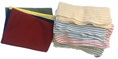 Kitchen Dish Towels and Dishcloths Set - Absorbent Dish Towels (4) -World's Best Dish Cloths (12) -Assorted Colors