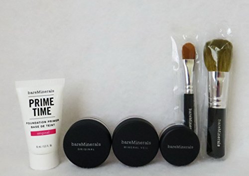 This introductory kit will get you on your way to radiant, healthy-looking skin, beginning with a 30-day supply of award-winning Original Foundation Broad Spectrum SPF 15 and signature essentials. Experience the look of beautiful skin with the flawless coverage you desire and none of the harsh chemicals your skin doesn't need. The kit Includes: Prime Time Foundation Primer (0.5 fl. oz.) Original Foundation Broad Spectrum SPF 15 (0.03 oz.) Concealer Broad Spectrum SPF 20 in Bisque (0.02 oz.) Mineral Veil Finishing Powder (0.03 oz.) Mini Full Flawless Face Brush Mini Concealer BrushFeature