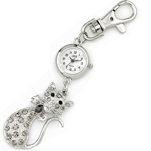 JAS Unisex Novelty Belt Fob/keychain Watch Cat Silver Tone
