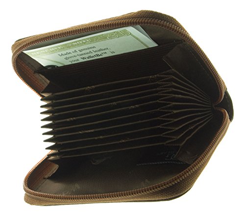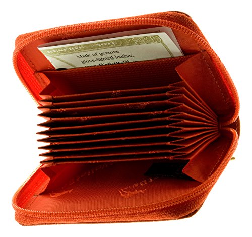 -. Feature : Actual Size: 4-1/4" x 3" / Women's Leather ID Accordion Wallets / Exquisite hand finished Italian leather / Holds at least 9 credit cards. Convenient outer ID display / Elastic cash band/Zipper enclosure for change