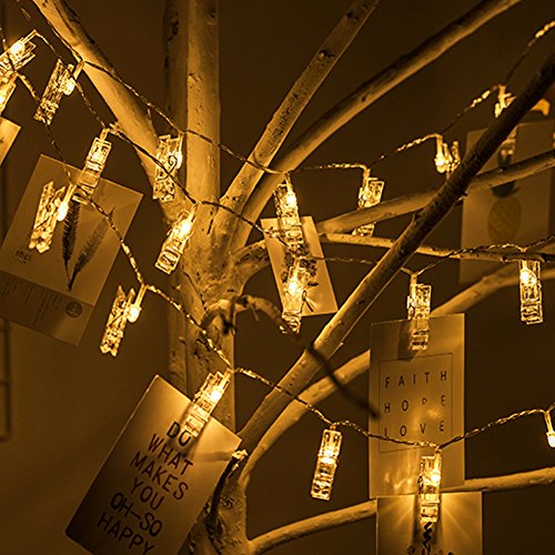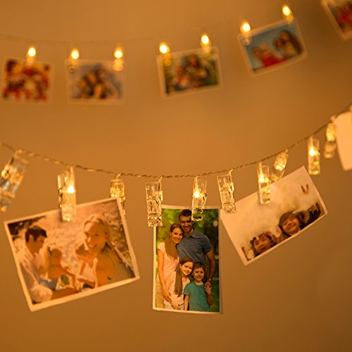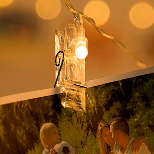 -. Feature : Each LED bulbs equipped with a transparent clip can nip photo or other small Items creating warm atmosphere, spreading light and cheer across a wide area.Indispensable for festival decoration! / Safe-the transparent light strand and the clear clip is isolated(10cm space between each clip),safe for touch, perfect lighting decoration for living room,dormitories,galleries,pub,etc / Light-Up your room and add your own personal touch with this set of Led Photo Clip String Lights. / Photos + Lights-The coolest thing for room, new functional string lights for holiday, courtship. Not just a string lights, also an ideal showcase for photos, artworks, memos .Perfect decoration for Valentine's Day,Halloweem, Christmas,other holidays,party,wedding, Popularly used for decorative / SPECIFICATION: Length of the wire light is 7.2ft/2.2 m with 20 LED, Length of the wire light is10.5ft/ 3.2 meters with 30 LED,Length of the wire light is 13.8ft/ 4.2 meters with 40 LED, the single size of the clip is 2.2inch X0.6inch X0.8inch