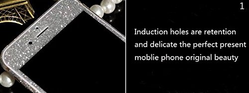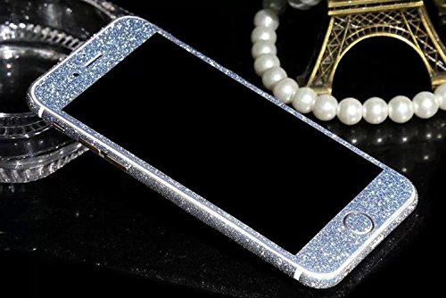 - Feature : Light weight,slim and perfect fit for Apple / Please note: This is a PROTECT STICKER for your iphone, NOT A CASE. / Made of high quality durable chrome material / Shimmering glitter coated inlayed back surface and silver chrome frames with rhinestones crystals decoration / Shock-absorbing,skid-proof,anti-scratch and anti-fingerprints