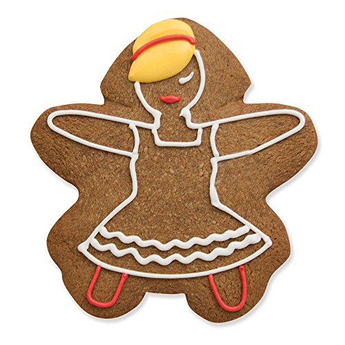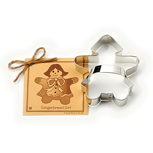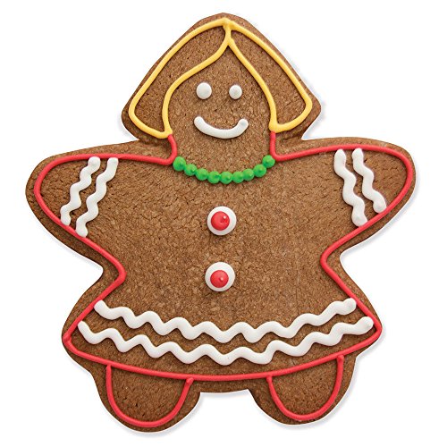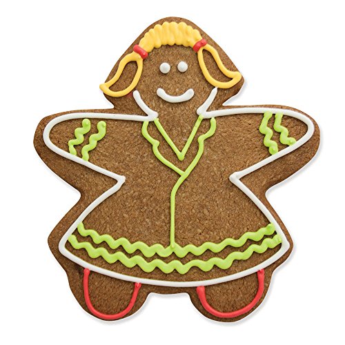The 4 1/4" Gingerbread Girl Cookie Cutter is the complement to the Gingerbread Man. This cutter comes attached to a card with recipes for tasty gingerbread cookies and delicious frosting. Holiday cookie decorating is great a ton of fun with this great shape. You can also use the Gingerbread Girl as a fondant cutter, fruit and cheese cutter and for a variety of Christmas Crafts and Decorating.