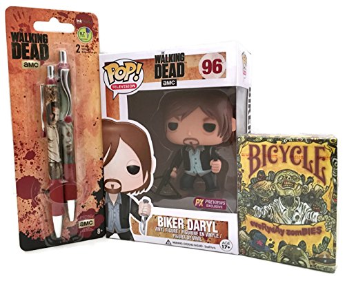 -. Binding : Toy -. Brand : Funko POP Television The Walking Dead -. EAN : 0736902498958 -. Feature : 4-Item Bundle: w/TWD Biker Daryl Exclusive, Rick Grimes 2-pk Black 0.7mm Gel Pens & Zombie Playing Cards / Previews Exclusive #96 Edition 4. Daryl is sporting his Leather Jacket w/ the Angel Wings on the back / He is holding his Iconic Crossbow in his right hand & his knife on the left. Ready to kill some Zombies! / Included: AMC TWD Rick Grimes Black 0.7mm Gel Pen 2-pk / Included: Everyday Zombie Playing cards from Bicycle w/ unique artwork by Zombie Artist Rob Sacchetto -. Genre : Other -. IsAdultProduct : 0 -. Label : Funko -. Manufacturer : Funko -. MPN : 10297296 -. PackageQuantity : 1 -. PartNumber : 10297296 -. ProductGroup : Toy -. ProductTypeName : TOYS_AND_GAMES -. Publisher : Funko -. Studio : Funko -. Title : Biker Daryl Exclusive by Funko Bundled w/ Rick Grimes 2-pack Gel Pen & Zombie Playing Cards -. UPC : 736902498958
