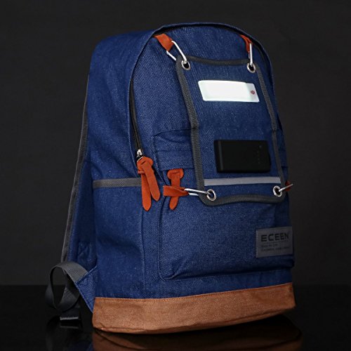 -. Feature : HIGH-QUALITY BACKPACK- It is made of cotton polyester denim fabric, wrinkle-free, can not afford to hair, good texture. Wider thicker and adjustable shoulder straps, design of decomposition of the force, for carrying comfort. / REMOVABLE &FOLDABLE SOLAR CHARGER - 3.5Watts foldable solar panel removable from main packs. It can absorb solar energy, high efficiency up to 22% efficiency solar charging technology keeps your devices powered up with free solar power. The solar cells in a protective anti scratch hardened coating sewn into high-wear PVC fabric for weather-resistant outdoor durability. / CHARGE A VARIETY OF DEVICES EVEN AT NIGHT- Built-in 2,000mAh slim and waterproof Li-Polymer Battery pack harge for iPhone, Samsung, other smart phones, External Battery Packs, GPS systems, MP3 Players, Bluetooth Speakers. Do not worry your devices run off power all day and night! / UNIQUE LED LIGHT DESIGN - 1Watt Led light power from chargeable battery. Do not afraid of darkness at night either. Just enjoy the greatest happiness during travel camping all day and night. 10 pcs led chips, sensitive touch 3 modes for Light Modes: High-brightness, Low-brightness, and SOS/Emergency flashing, very suit for camping, hiking or other outdoor activities at night. / PACKAGE CONTENTS: 1PCS*ECEEN 3.25W solar light backpack,4PCS* Carabiners,1PCS* 40cm Micro USB cable,1PCS* instruction manual.