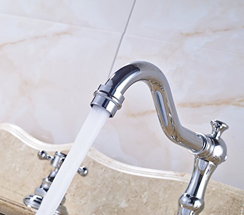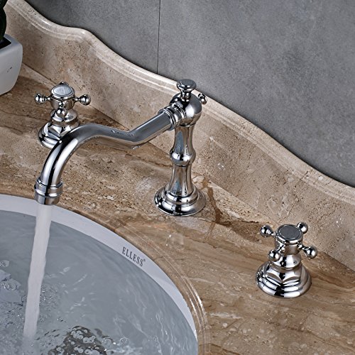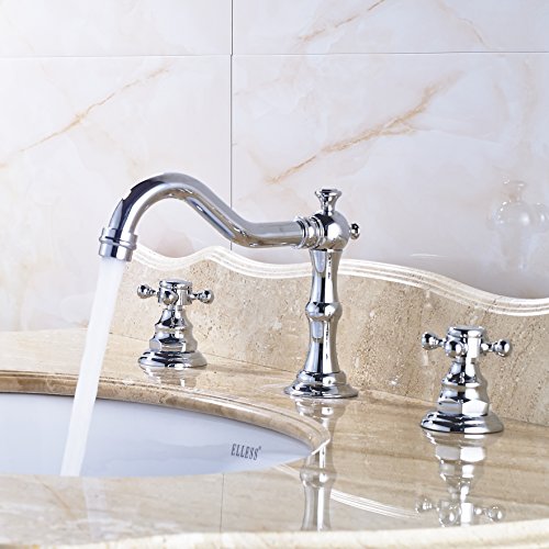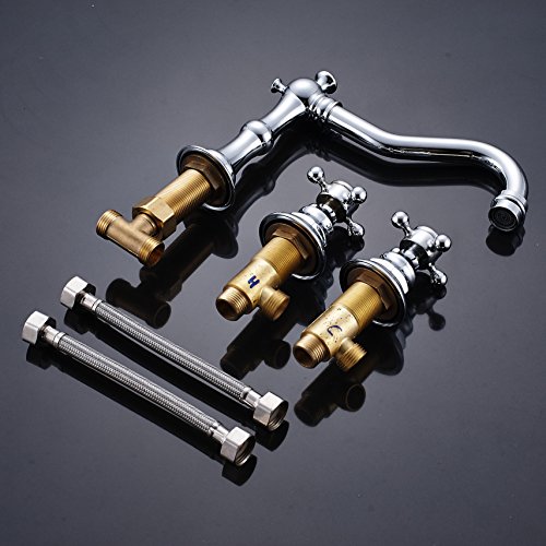 -. Title : Rozin Chrome Widespread 3 Holes Bathroom Sink Faucet Dual Cross Knobs Mixer Tap