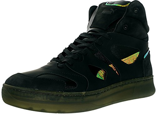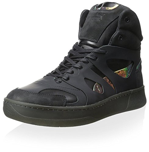 Studio : Puma Publisher : Puma Binding : Shoes Product Description Leather upper with cage detail, chunky air mesh panels, and hits of padded neoprene for a futuristic look. Mid height silhouette. Cushioned collar and tongue for comfort and excellent ankle protection. Lace-up closure for optimal fit. Smooth leather lining and a cushioned footbed for all-day comfort. Durable man made outsole for excellent traction. Made in Italy. 0