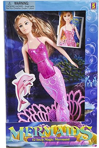 A mysterious and beautiful princess from the deep blue sea. This adorable doll is a 12-inch mermaid . Each one in window box packaging.