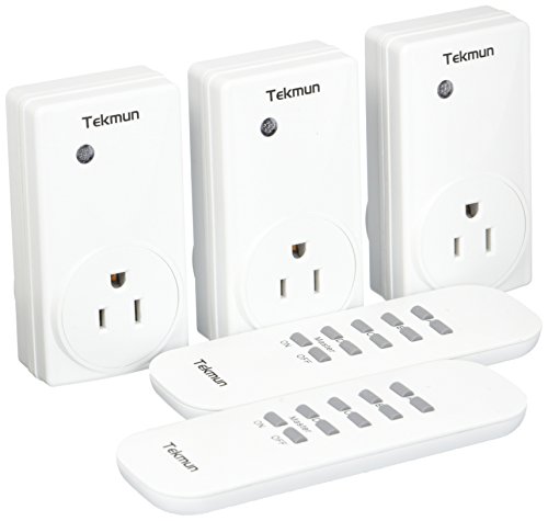Tekmun Remote Control Wireless Energy Saving Electrical Outlet 3-Pack Sockets with 2 Long Range Handheld On-Off Controls Includes 2 CR2032 Batteries
