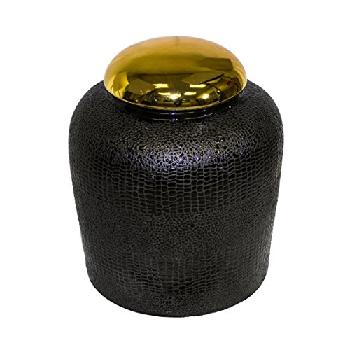 Sagebrook Home Decorative Ceramic Covered Jar, Black/Gold
