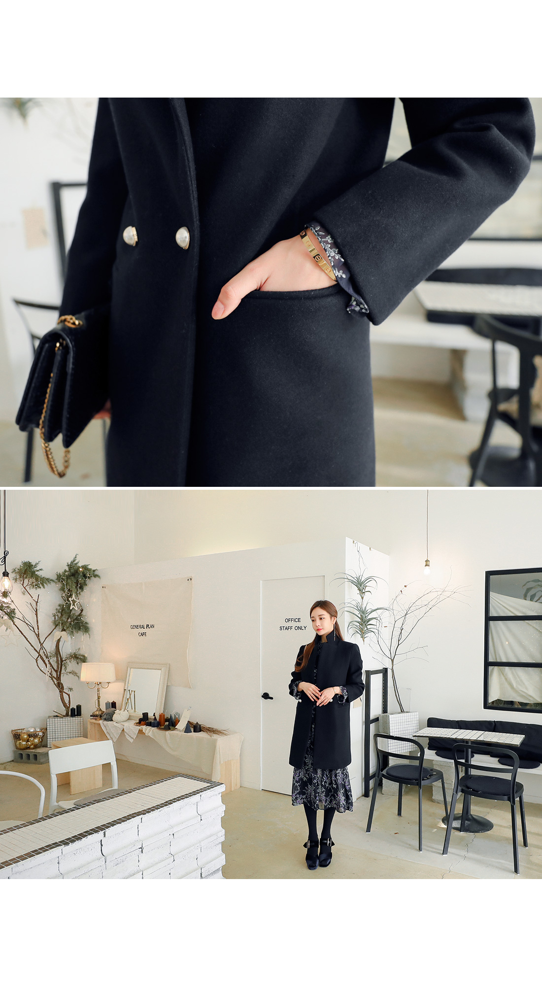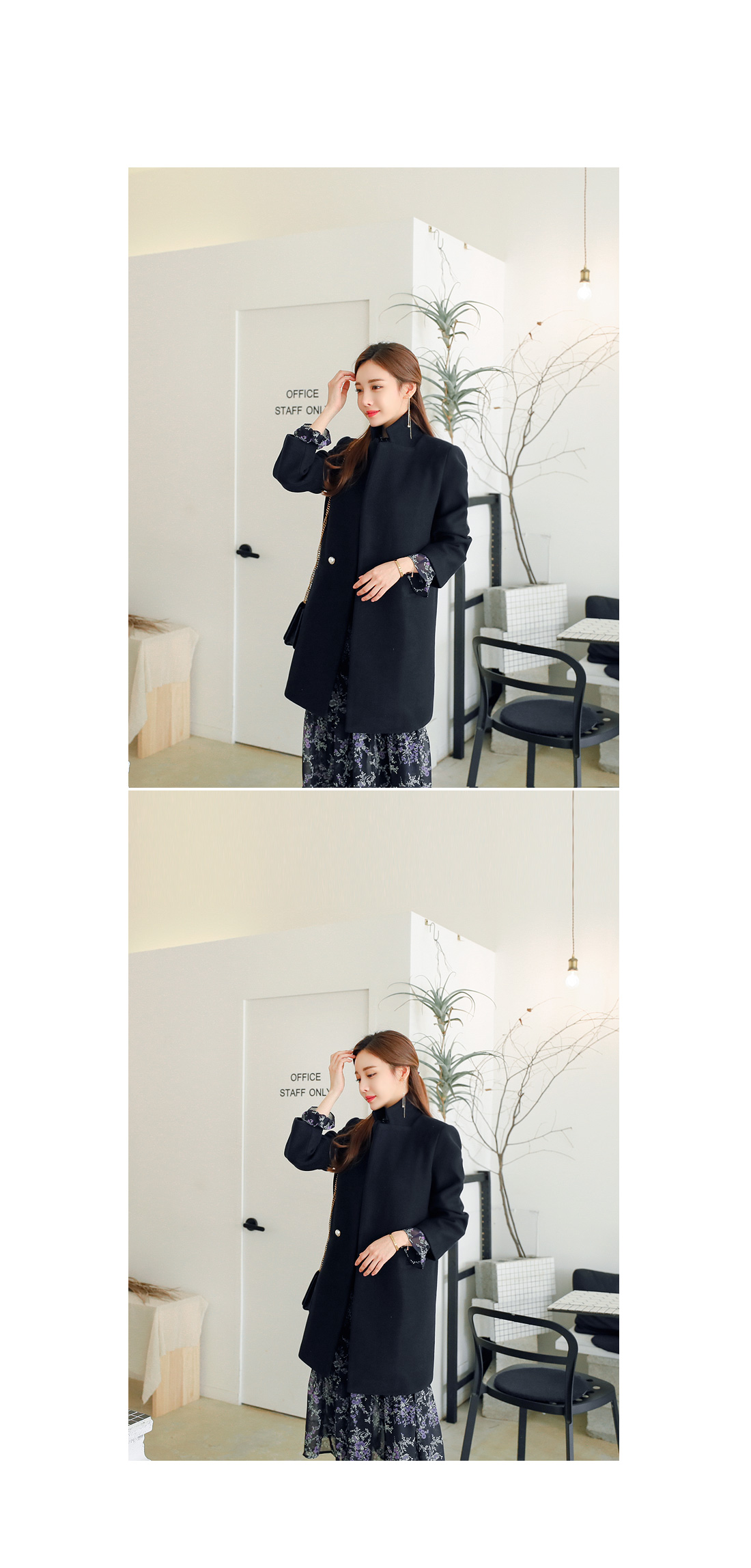 트렌디한 핏감의 진주버튼 코트 소개할게요.