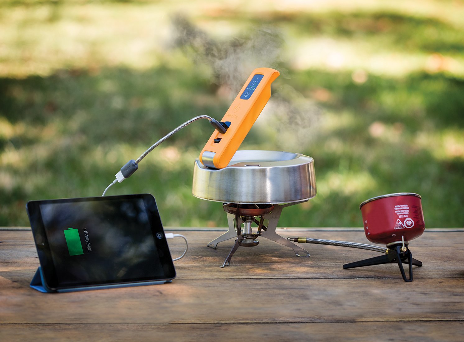 Inspired by the outdoors while also keeping you prepared at home, the KettleCharge provides off-grid power and potable water in a matter of minutes. Unlike solar panels, the KettleCharge is ready night or day, and at 10 watts, it will charge USB devices as fast as a wall outlet, even tablets. An evolution of BioLiteÕs core thermoelectric technology, the KettleCharge uses the water you boil to produce electricity. It works on a wide range of stoves and serves as a perfect personal-scale generator for your everyday devices. Just fill, heat, charge.