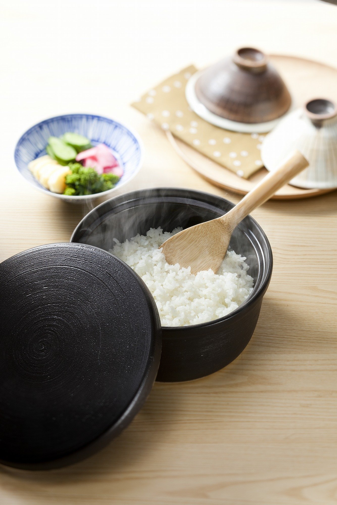 ● Adjust the moisture with the water absorbency of the pottery, save the rice deliciously.
