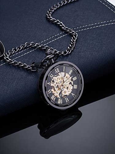 -. Title : Mudder Antique Hand Wind Skeleton Mechanical Pocket Watch for Men