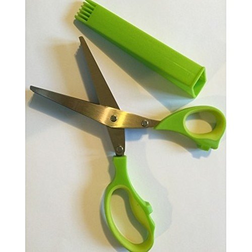 Prepare herbs for cooking and create pretty garnishes in seconds with these five-blade herb scissors. Quickly cut, chop or mince herbs directly into a pan or over a plate for garnishing herbs into thin strips. 5 Stainless steel blades cut cleanly, without tearing or bruising delicate leaves. The large plastic handles have a soft silicone lining for the most comfortable grip. Clean up is simple; just toss the kitchen shears into the dishwasher. It comes with a protective cover for safe storage. Protective cover doubles as a plastic brush to remove any build-up between the blades. This is a great gift for the person who has everything. Perfect for kitchen, bridal, wedding shower, hostess, birthday and housewarming gifts. Buy one pair for food. Buy a second pair for arts and crafts and shredding fabric or paper.