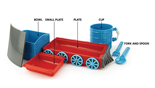 - Train-shaped place setting measures approximately 8-2/3 by 19 by 8-2/3 inches
