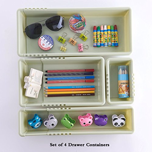 Creative Storage Drawers Drawer Organizers VANORIG Multipurpose Drawer Containers Office Stationery Storage Box Kitchen Drawer Dividers ,Set of 4 (Light Olive Green)