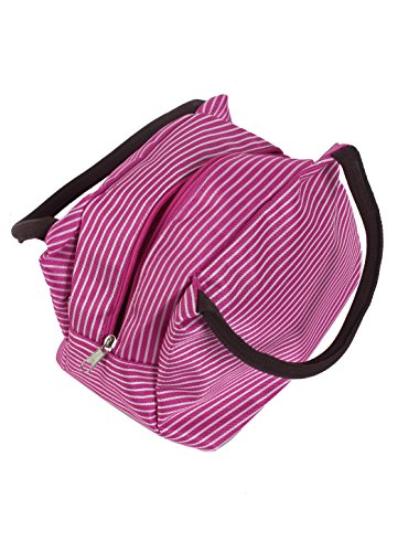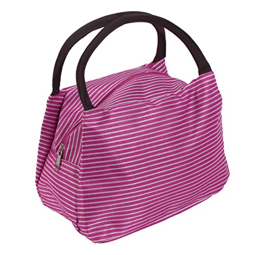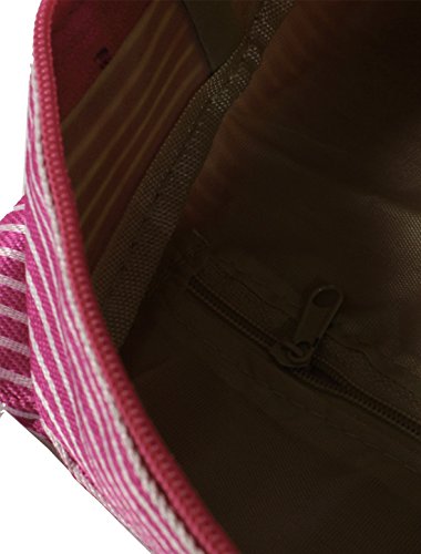 uxcell Stripe Pattern Women Toiletry Makeup Pouch Holder Handbag Cosmetic Bags Fuchsia