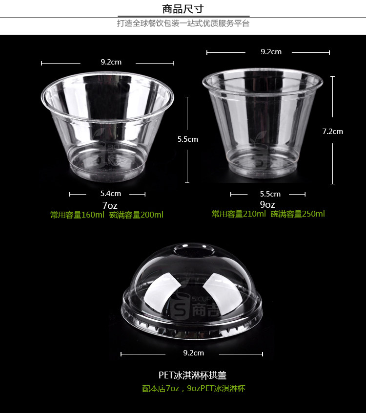 拱盖:配本店7oz,9oz PET冰淇淋杯-口径9.2cm