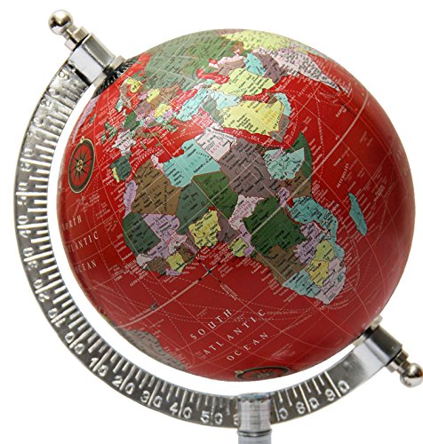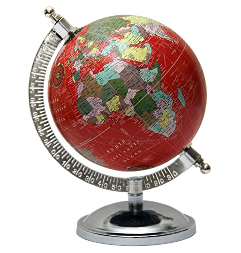 Studio : TeT Publisher : TeT Binding : Office Product Product Description * Red Mini Decorative Political Rotating World Globe * GLOBE - Height : 8.5"inches(Approx), Weight : 270-300gm, Ocean Color: Red , Language : English, Map: Political * GLOBE BALL - Material : ABS Plastic, Cirumference: 16"inches(Approx), Diameter: 5" inches(Approx), Color: Red * BASE - Metal, Color: Silver, Diameter: 4"inches(Approx) * SEMI MERIDIAN - Material: Metal, Color: Silver * Natural Scale: 1:72,000,000 * Globe shows oceans, seas, major cities, countries capitals, islands continents. * Thinking of getting a tabletop? With our selection of spectacular tabletop globes, you can style your study, library, den and even living space to a better gaze that will deliver a fabulous must needed change in your room's embellishment.Our catalogue of decorative globes will bring a better choice to decorate and style you space from the selection of illuminated, non-illuminated and gemstone style. Our tabletops will bring an obligatory alteration in your styling pattern that will also help you to browse the world from any angle and spin. Order now, because shipping is free! * NOTE: This globe is for decorative purpose only. * Actual Color may vary from those shown in Images due to photography and screen color settings of your device.