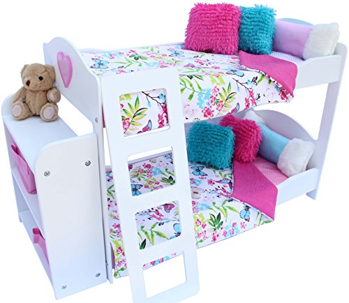 20 Pc. Doll Bedroom Set for 18 Inch American Girl Doll. Includes: Bunk Bed, Bookshelf, x2 Bedding Sets, x2 Pajama Sets and more...