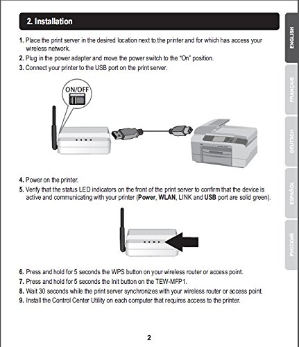 TRENDnet's 1-Port Wireless N Multi-Function USB Print Server, model TEW-MFP1, transforms most stand-alone multi-function and standard USB printers into a shared network resource. Install your multifunction printer in the most ergonomic location and then connect the compact TEW-MFP1 to a high speed Wireless N network